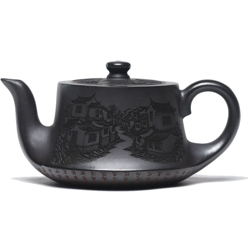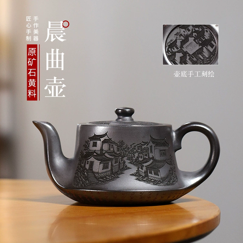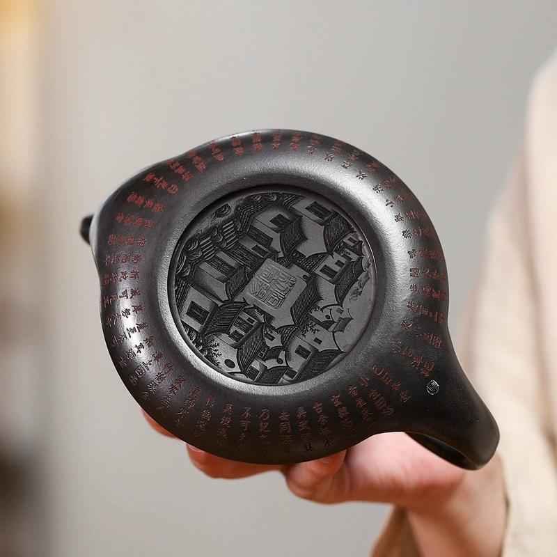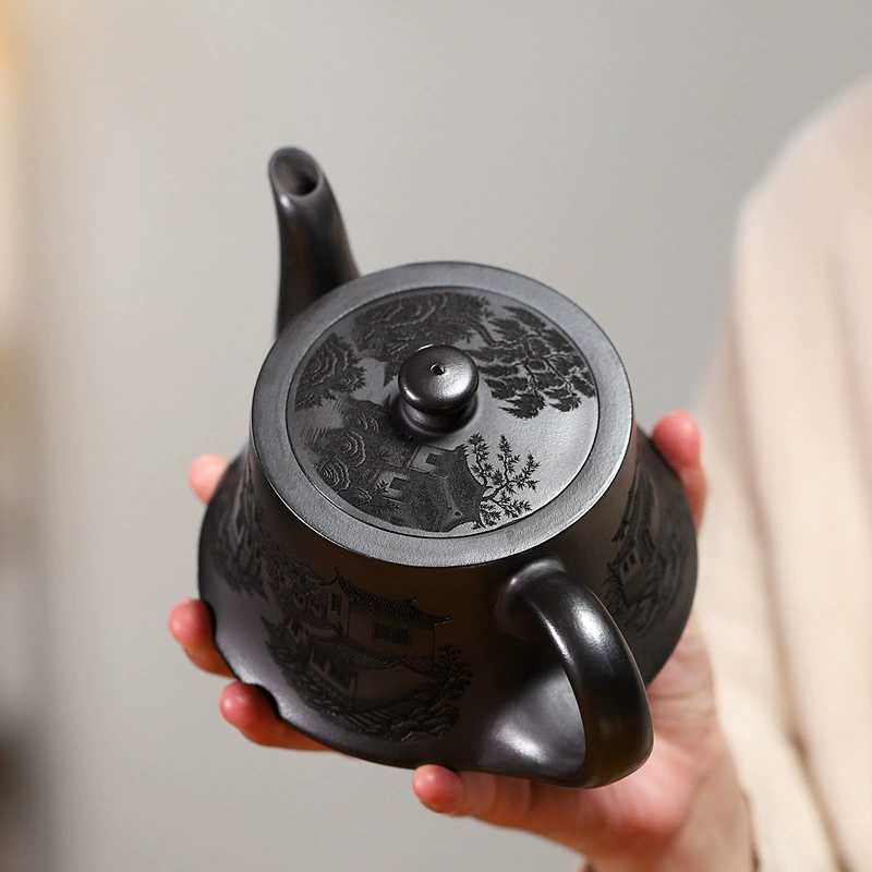 This teapot boasts delicate workmanship, elegant antique coloring, and rich cultural charm. It features a sturdy cylindrical body with a distinct waistline, strong and smooth lines. The spout and handle flow naturally from the base, providing smooth, clean pouring. The round lid fits perfectly, ensuring great airtightness and long-lasting beauty.