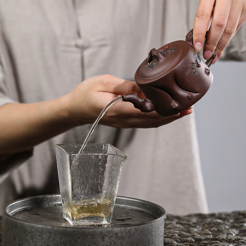 This teapot is decorated with clay-painted grape motifs, where abundant seeds symbolize harvest, prosperity, and many blessings. Elegant and natural, it features winding vines and grapes covering the body. The knob, spout, and handle are shaped like grape branches, perfectly combining practicality and art.