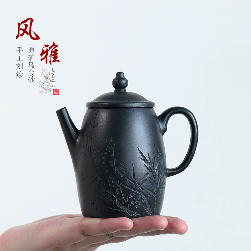 Made from genuine black gold ore clay, it forms a rich, dignified patina with long-term use. With natural graceful lines and balanced structure, it combines beauty and functionality for daily tea enjoyment.