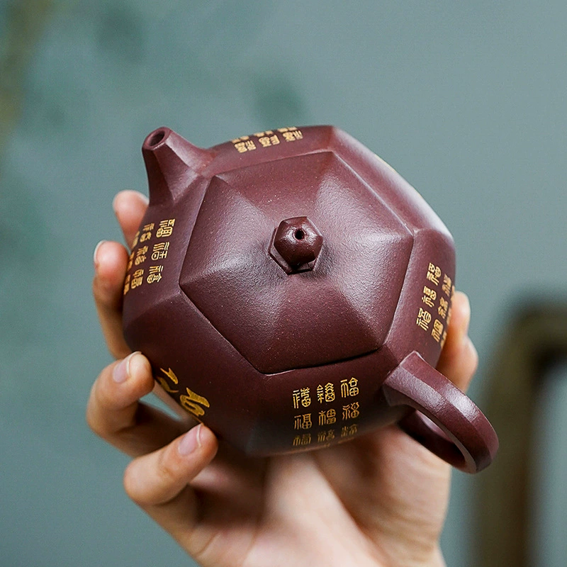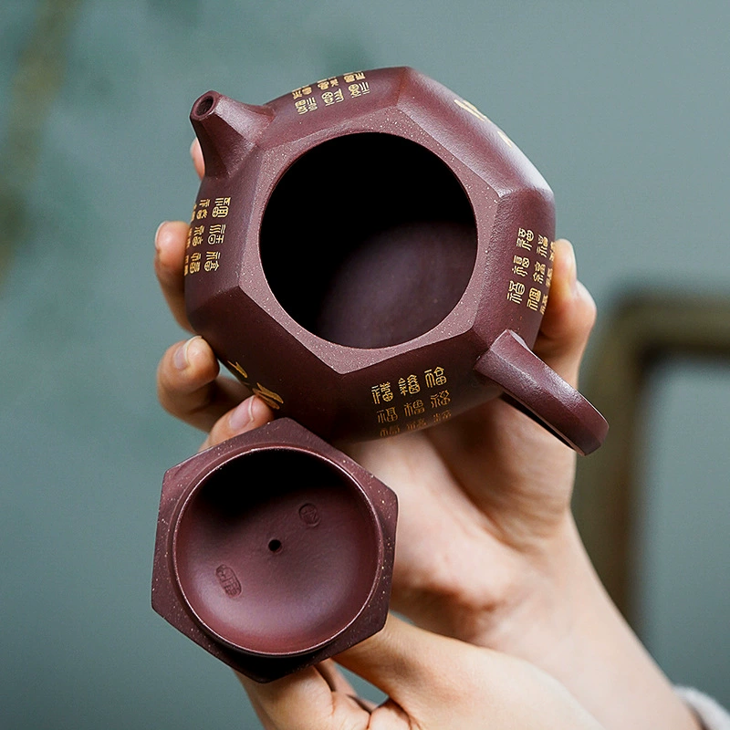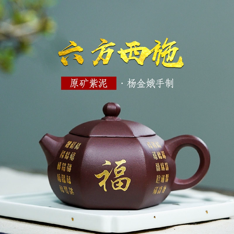 This hexagonal Xishi teapot presents a unique charm of firm exterior and gentle interior. It adopts the classic design of combining square and round shapes with smooth and neat lines. The tightly fitted lid and well-proportioned structure deliver a unified and elegant visual effect.