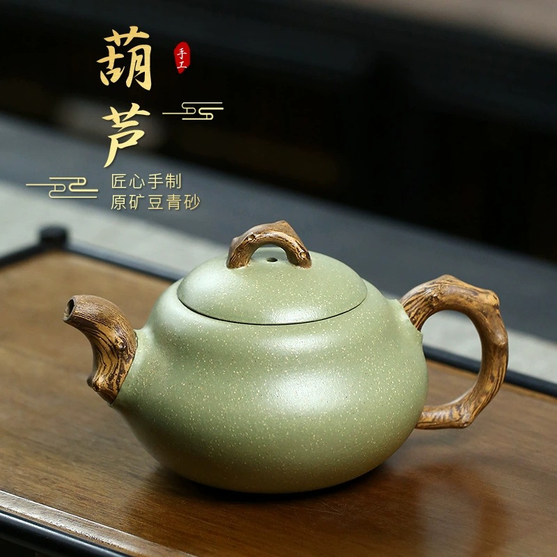 The smoothly curved handle forms a simple, natural loop. The lid is topped with a delicate gourd vine knob, fresh and elegant, highlighting the gourd theme with thoughtful craftsmanship.