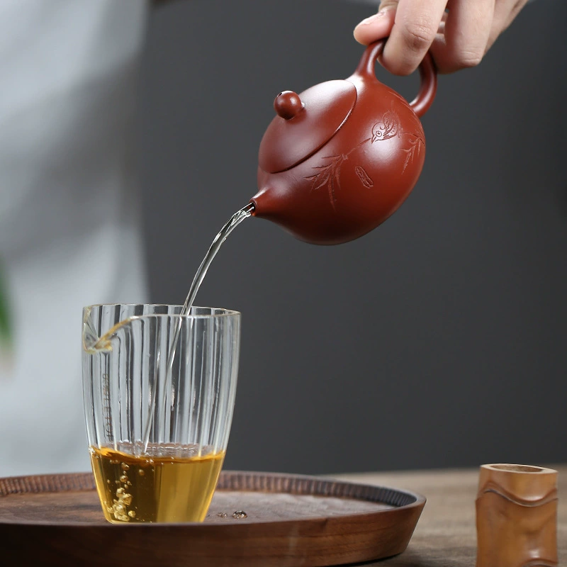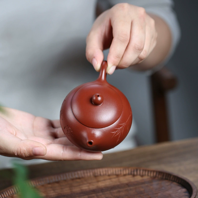 This clay has a strong, natural texture that matures beautifully with use. Over time, it develops a rich, glossy patina, becoming smoother and more dignified. The elegant lines, balanced spout and handle, and slender curves give the teapot a graceful, refined appearance.