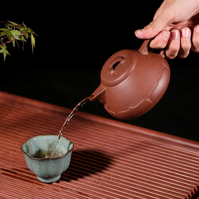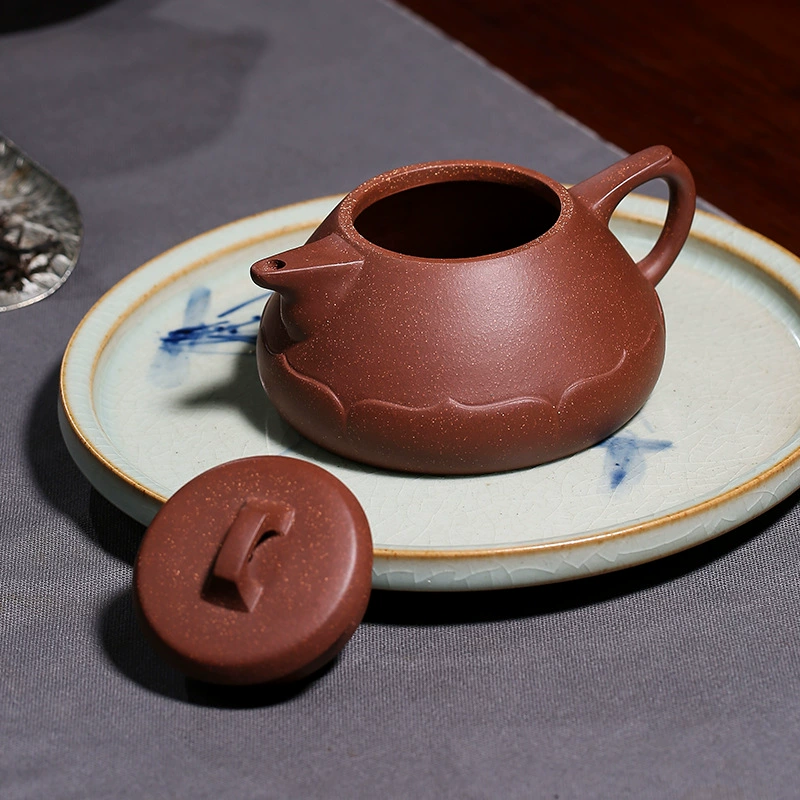 This teapot features an elegant and refined shape, decorated with fresh and beautiful lotus patterns, making it an excellent choice for both tea tasting and collection. The pot has a full outline matched with exquisite lotus petals, and the round body brings a fresh and wonderful feeling. The curved spout is integrated and independent of the pot body, while the circular handle with square details has smooth and powerful lines, adding more delicacy.