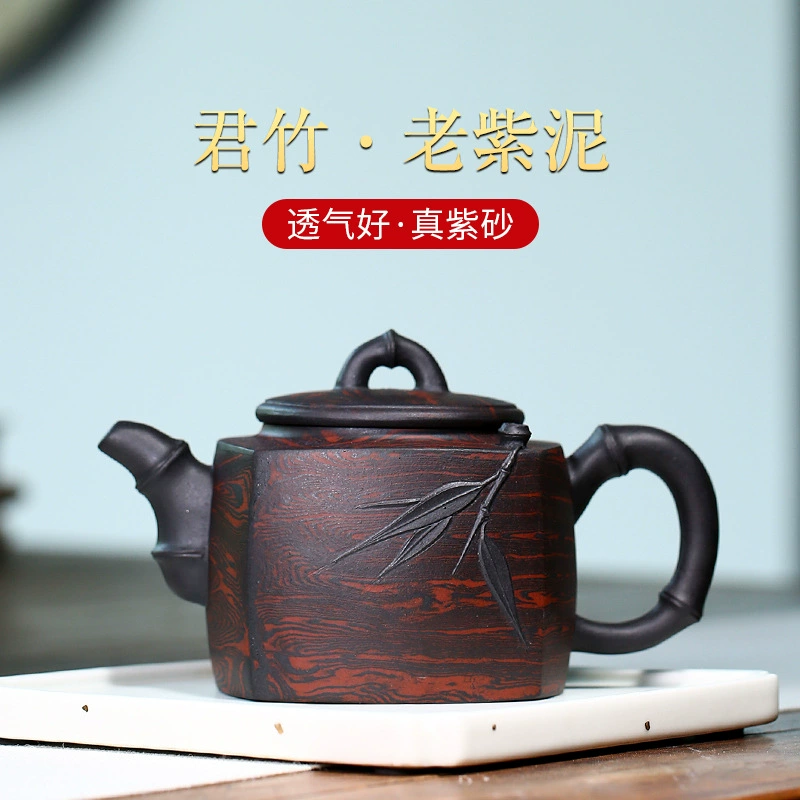 Handmade Junzhu Bamboo Yixing Purple Clay Teapot 350cc