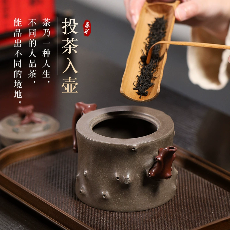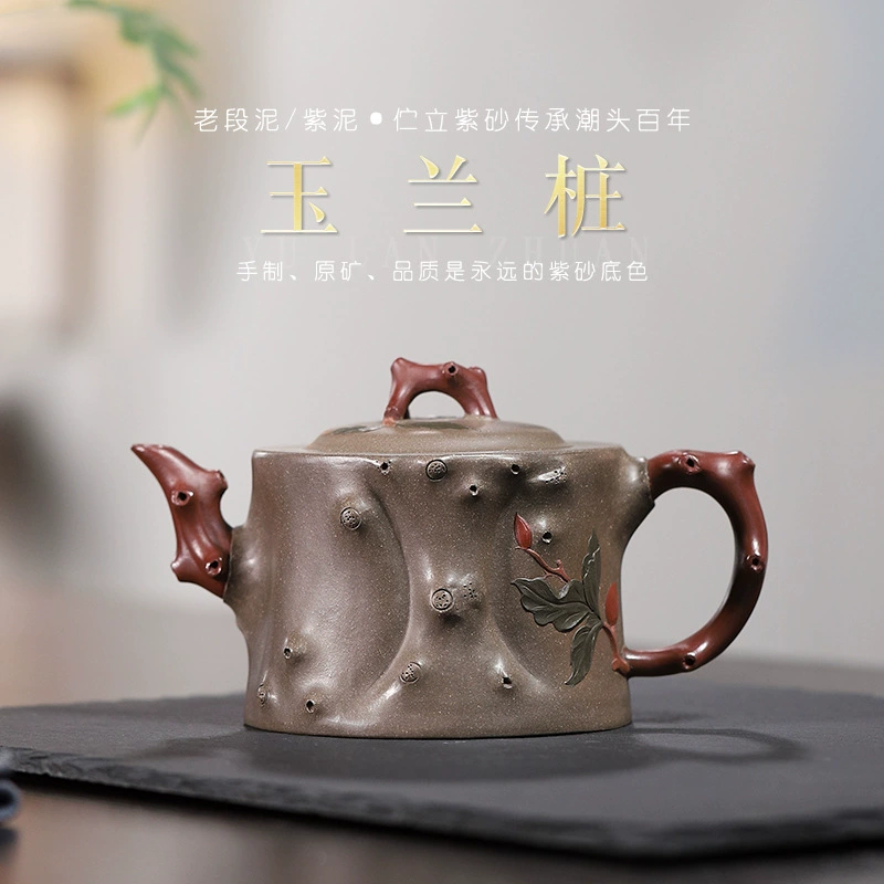 This teapot is crafted in a realistic bionic tree-stump style. Its irregular shape features natural scars, cracks and bark textures for lifelike appeal. The spout, knob and handle are designed as magnolia branches in varied curves and thickness, enhancing its vivid charm.
