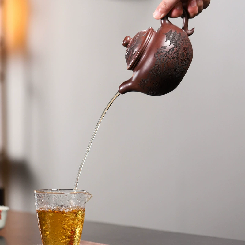 Clay Features: The raw ore purple clay has a rich earthy aroma, resembling a sincere farmer. With long-term use, it gradually develops a smooth, warm luster, showcasing remarkable transformation and an elegant, solemn charm. The smooth lines and well-matched spout and handle enhance its overall grace.