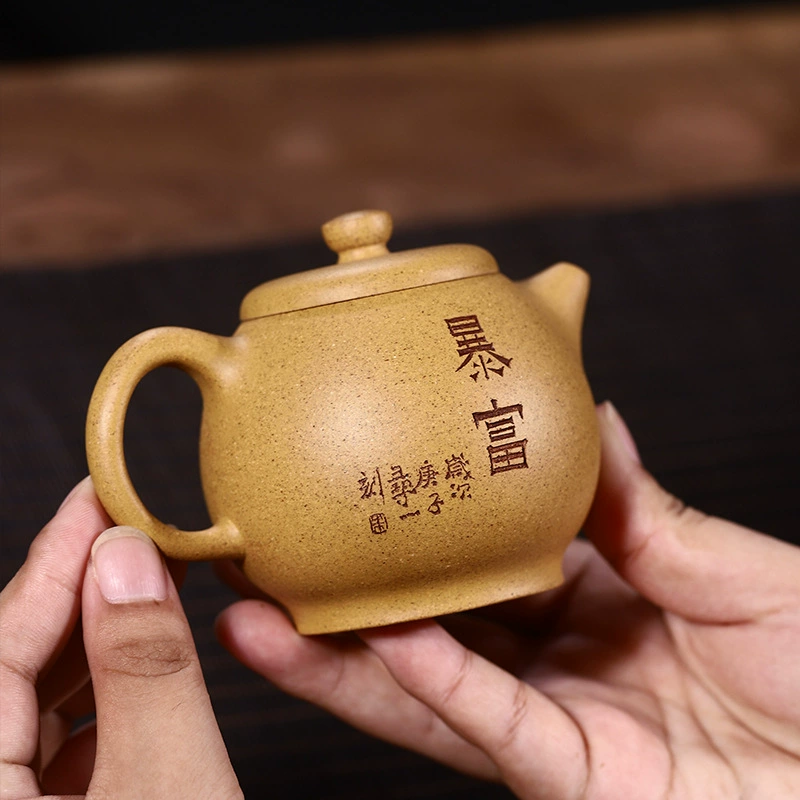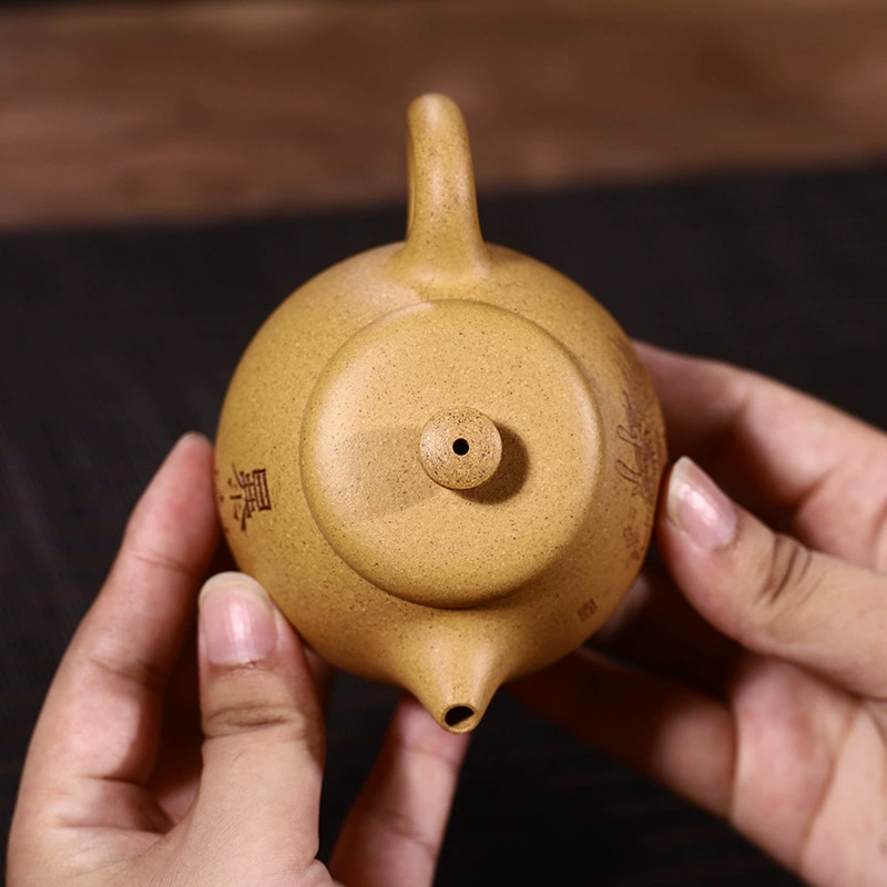 Crafted by Master Shi Zongjuan with traditional hand techniques, this original ore Yixing purple clay teapot is a harmonious unity of warm textured finish for the eyes, delicate smoothness to the touch, seamless synergy in use, and restrained cultural grace. It captures your heart at first sight and grasp, growing luster and silkier with tea nourishment, embodying the profound depth of Eastern aesthetics and the accumulation of time.