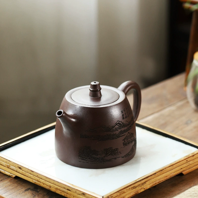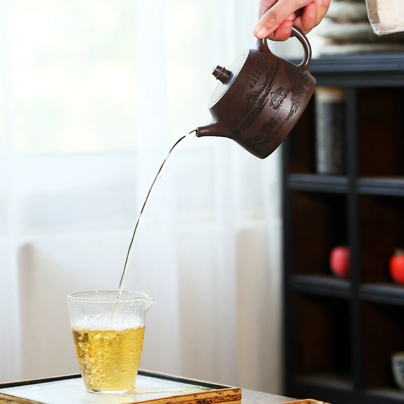 This teapot boasts a clean, classic shape with a flat fitted lid that blends perfectly into the body. Every line and surface flows smoothly, with an elegant natural tone and precise, careful craftsmanship. It reflects the authentic beauty of traditional Yixing Zisha art: sturdy yet refined, graceful yet disciplined, simple yet elegant, and exquisitely crafted.