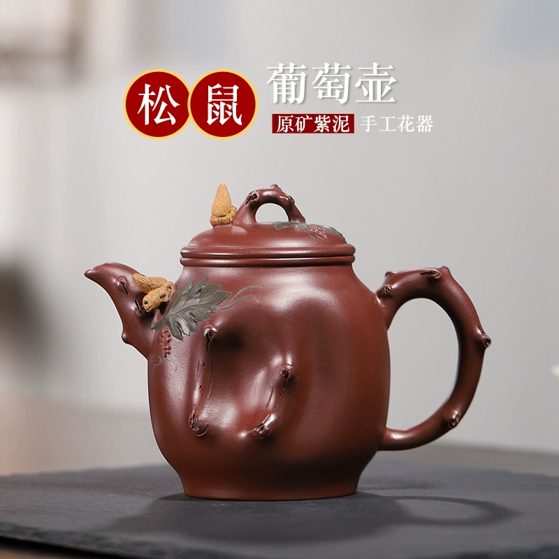 Large Capacity Squirrel & Grape Yixing Zisha Teapot 510cc
