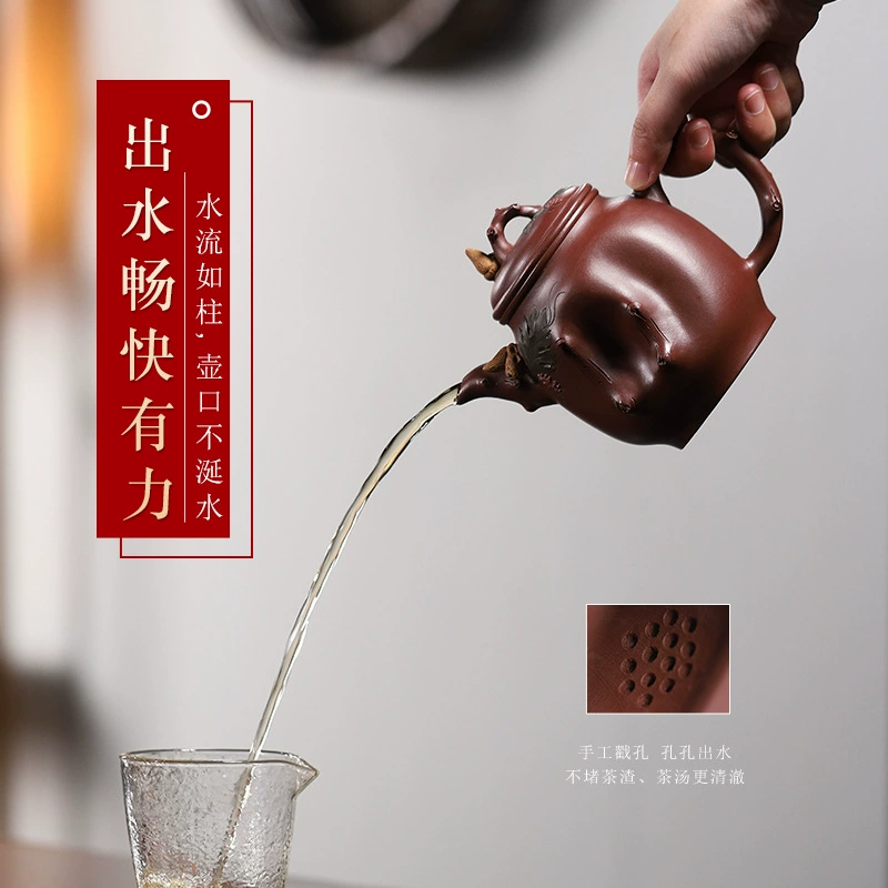 Made of high-quality original purple clay, it develops a warm, dignified patina with long-term use. It has smooth and elegant lines, coordinated spout and handle, combining artistic beauty, auspicious meaning and practical tea-making functions.