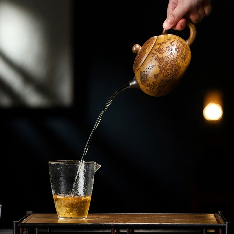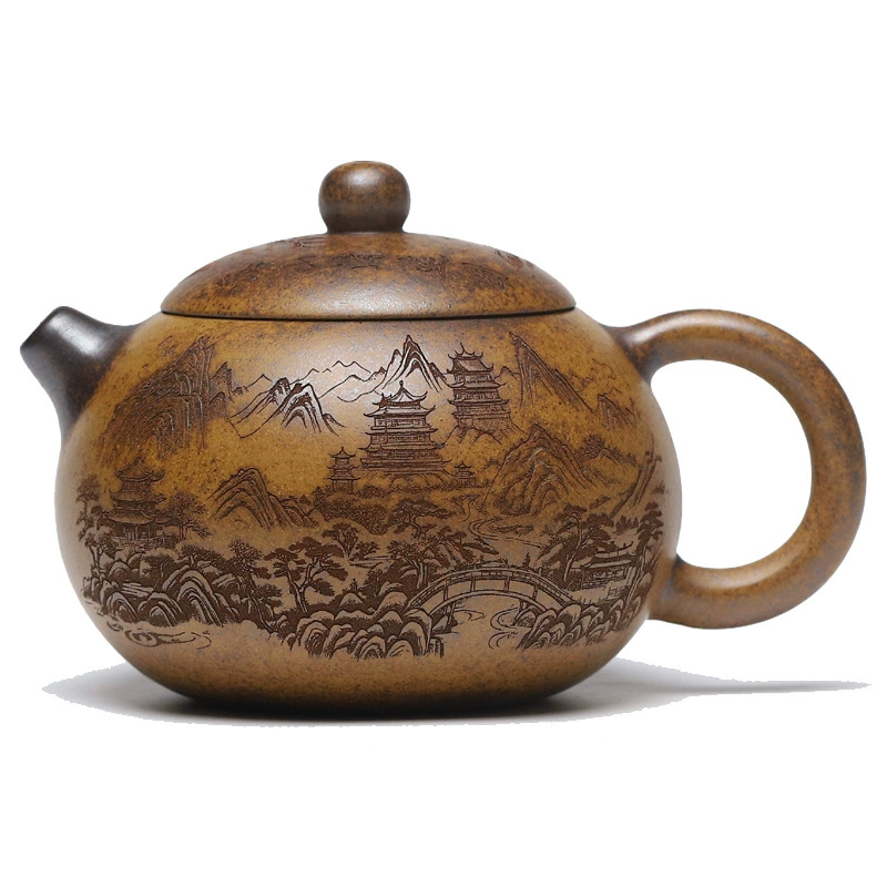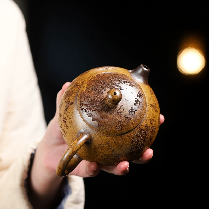 Introduction: This teapot features smooth, fluid lines and a natural, seamless design. Made from high-quality raw ore purple clay, it boasts a rich, dense texture and a deep, noble appearance. A classic Xi Shi teapot shape beloved by tea connoisseurs, it is plump, round, and endearing. The overall form, combined with its elegant aura, creates a harmonious visual beauty that brings spiritual delight to users.