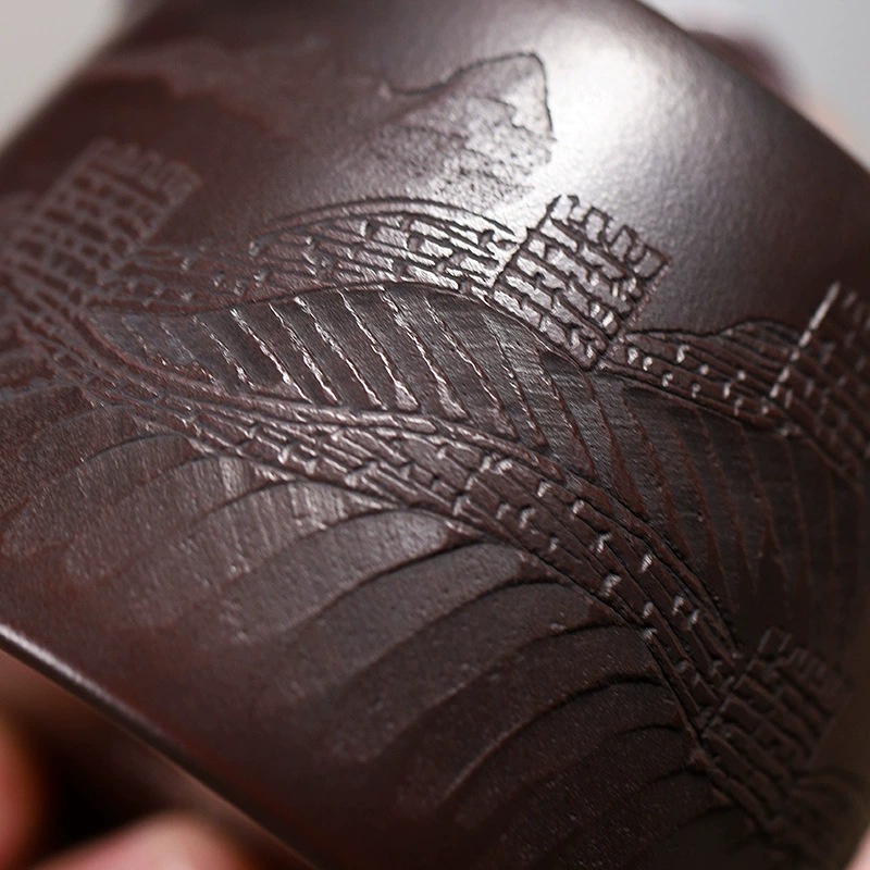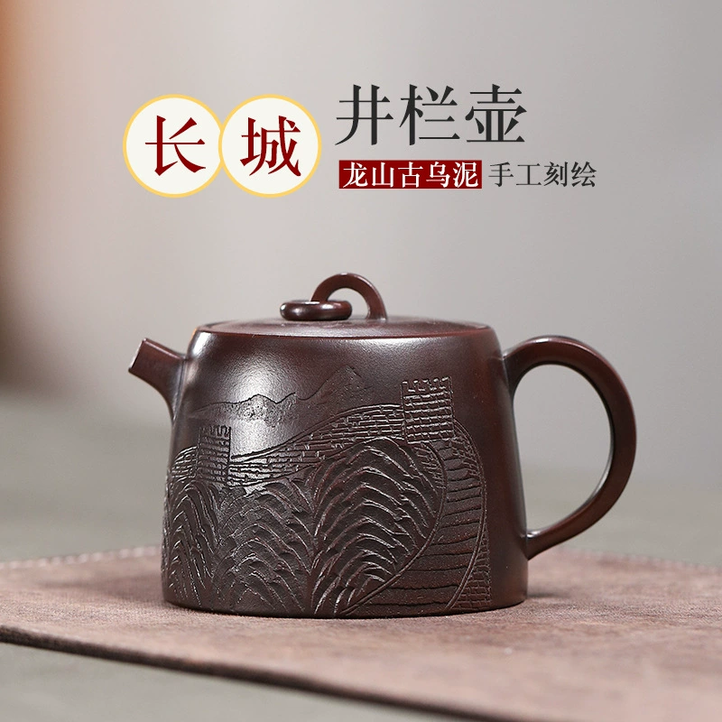 Adorning the teapot body is an intricate hand-carved Great Wall design, which vividly restores the brick texture of the city walls, the shape of the crenellations, and is complemented by mountain patterns. This masterful craft visualizes the “majestic grandeur of the Great Wall” on the teapot, preserving the antique simplicity of the Jinglan Teapot while adding a profound cultural commemorative significance.
