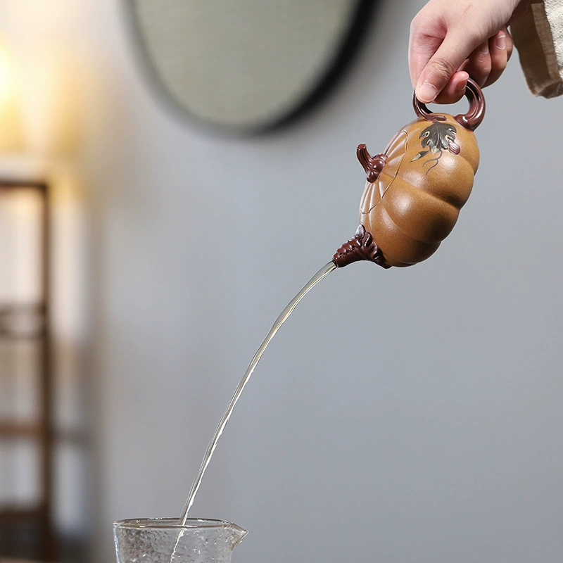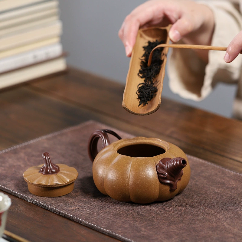 The pumpkin teapot is one of the most beloved classic shapes in Yixing Zisha art. This piece not only resembles a real pumpkin in form but also captures its natural, lively spirit—looking just like a ripe, plump pumpkin ready to be picked.