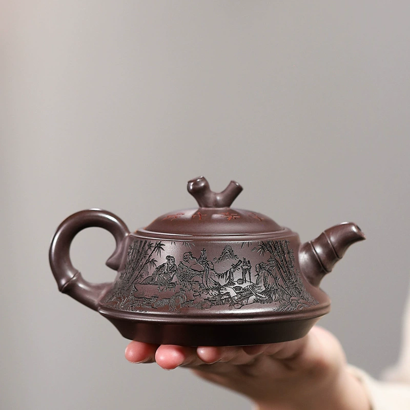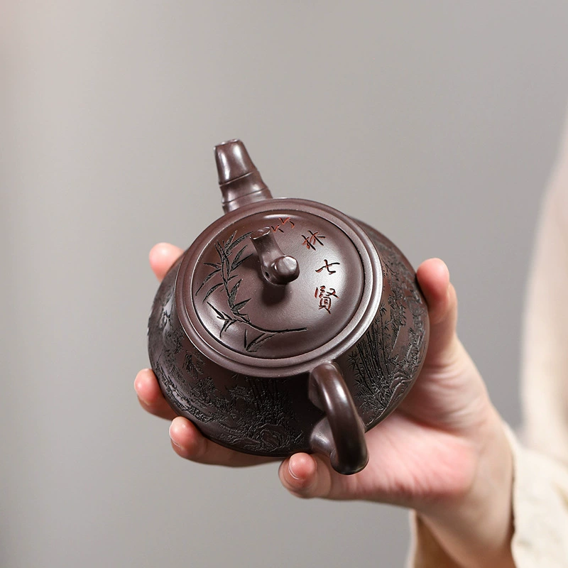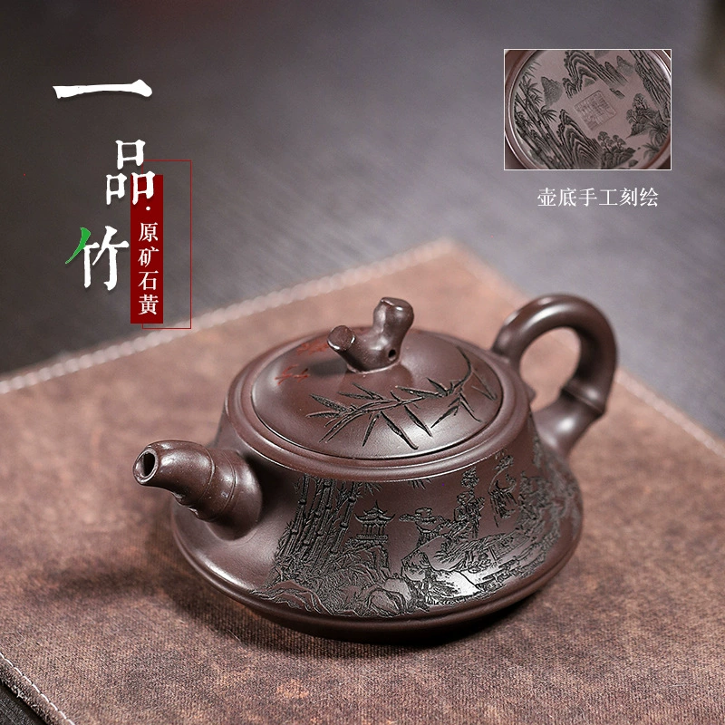 This teapot features an elegant, modest shape with a calm, natural classic style. Handcrafted from genuine raw ore yellow clay, it offers a smooth, refined texture. Infused with traditional Chinese bamboo culture, it represents noble virtue. The spout, handle and knob are shaped in distinct bamboo segments, symbolizing steady growth and grace.
