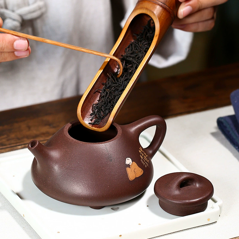 Shi Piao is a timeless classic in Yixing zisha art, highly valued by potters and collectors. This teapot features a clean, elegant design in a classic pyramid shape. It has a sturdy, short spout for strong pouring, a stable triangular handle, and a delicate arch-shaped knob. The whole teapot is simple, refined, and full of character.